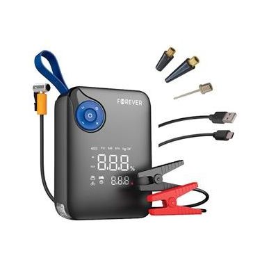 Štartovací adaptér Forever JS-400 je kompaktný štartovací adaptér do auta s kapacitou 7200 mAh , ktorý poskytuje spoľahlivú podporu v núdzových situáciách na cestách. Vďaka schopnosti dodať štartovací prúd až 600 A efektívne štartuje vozidlá a je navyše vybavený kompresorom s maximálnym tlakom 150 PSI a LED svietidlom .