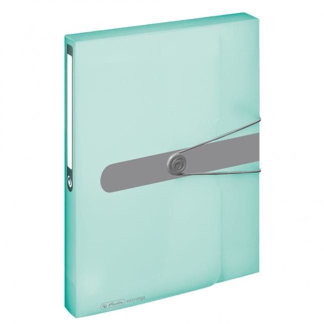 Plastový box s gumičkou A4/4cm - polypropylén, zatváranie gumičkou o plastový krúžok, kapacita 300 listov. Farba mentolová.
