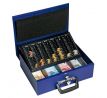 Pokladnička vybavená mincovou priehradkou s ôsmimi oddielmi na eurá a centy a štyrmi prístupnými priehradkami na bankovky. Pena na vnútornej strane veka na zabránenie premiešania mincí pri prenose, dve madlá na prenos pokladničky. K zámku sú dodávané dva kľúče.