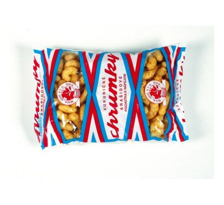 Kukuričné chrumky arašidové. Pochúťka k nápojom. Väčšie balenie 60 ks.