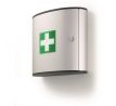 Malá lekárnička prvej pomoci v dizajne skriniek na kľúče. Dvierka, otvárajúce sa z dôvodu lepšej obsluhy v 180° uhle, 2 priehradky na základné lieky, obväzy, náplaste a nožnice. Materiál vysokokvalitný hliník. Dodávaná bez náplne s montážnou sadou na stenu.