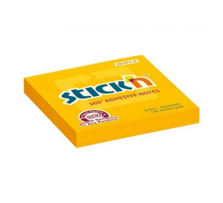 Samolepiaci bloček Stick'n Hopax , 360°, 76x76 mm, oranžový