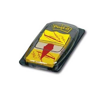 Priehľadná lepiaca časť a farebná časť na označenie. Prelepiteľné,znovunalepiteľné a popisovateľné. Rozmery záložky 25 × 43 mm. Farba žltá. Počet lístkov: 50.