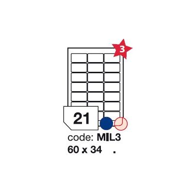 1000 listové balenie OBLÉ ROHY Etikety jsou vyrobeny ze samolepicího bílého papíru, který má svrchní bílý bezdřevý papír gramáže 70g/m2 spojen permanentním akrylátovým lepidlem se spodním bílým podkladovým papírem o gramáži 74g/m2. Materiál je vhodný pro potisk ve všech běžných typech laserových a inkoustových tiskáren. Není vhodný pro rychlotiskárny.